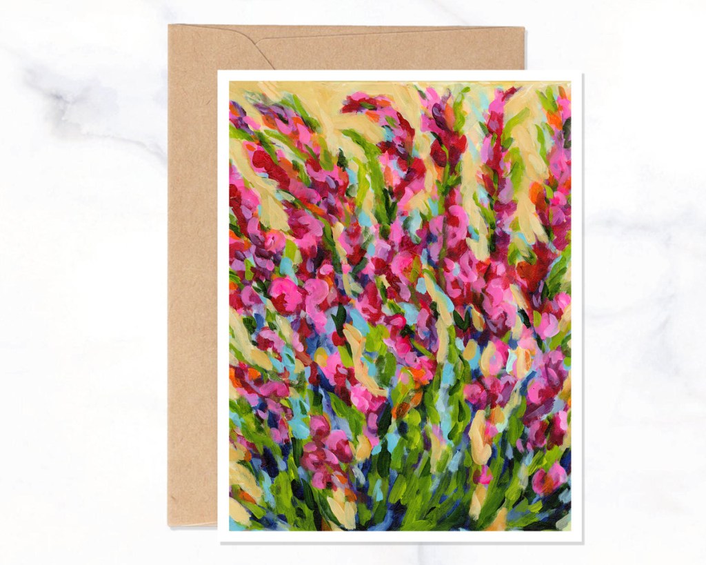 Stationery because I love snail mail and everyone that receives a note card get to enjoy beautiful, happy, colorful artwork.